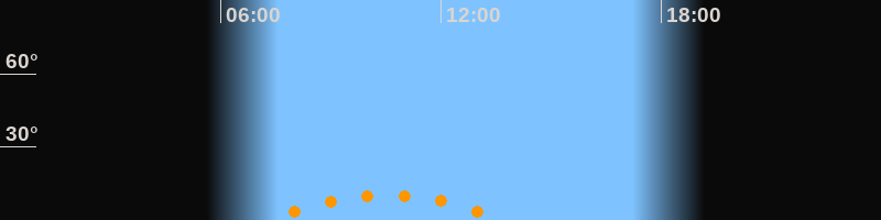 | Untergang | 13:45 Uhr im Südwesten (αAz = 221°) |