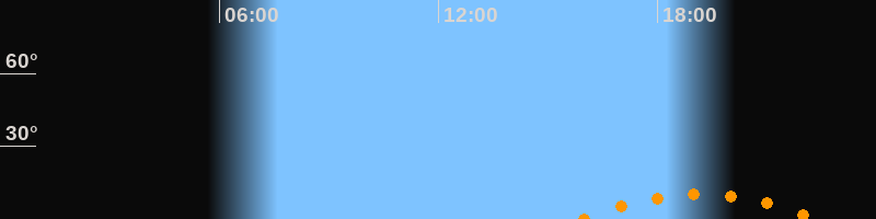 | Untergang | 22:23 Uhr im Südwesten (αAz = 221°) |