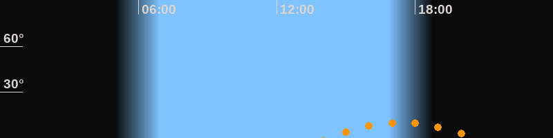 | Aufgang | 14:09 Uhr im Südosten (αAz = 139°) |