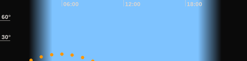| Untergang | 09:06 Uhr im Südwesten (αAz = 221°) |