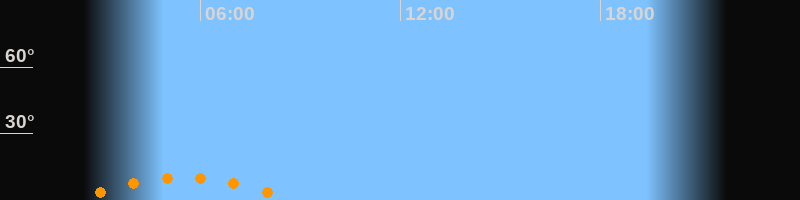 | Untergang | 08:42 Uhr im Südwesten (αAz = 221°) |