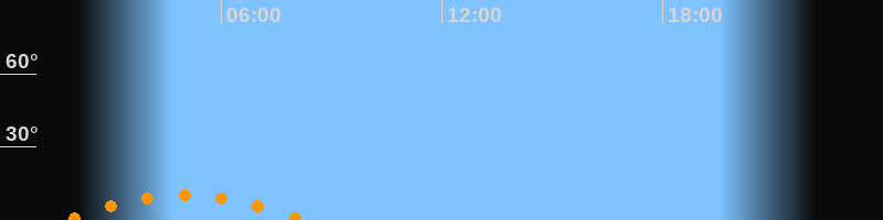 | Untergang | 08:15 Uhr im Südwesten (αAz = 221°) |