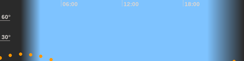 | Untergang | 05:30 Uhr im Südwesten (αAz = 221°) |