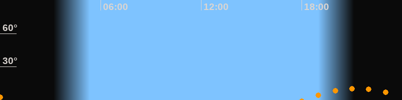 | Untergang | 00:31 Uhr im Südwesten (αAz = 221°) |