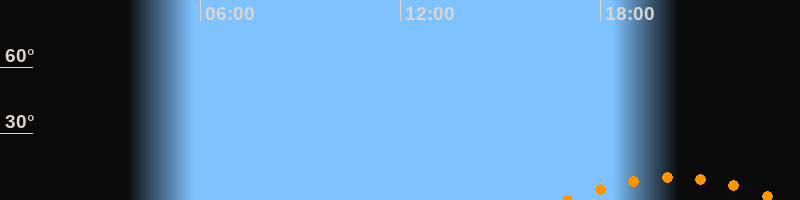 | Untergang | 23:24 Uhr im Südwesten (αAz = 221°) |