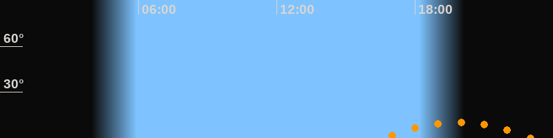 | Untergang | 23:04 Uhr im Südwesten (αAz = 221°) |
