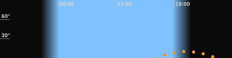 | Untergang | 22:29 Uhr im Südwesten (αAz = 221°) |