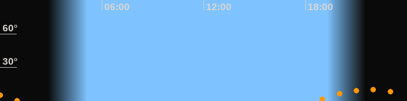| Untergang | 01:07 Uhr im Südwesten (αAz = 221°) |