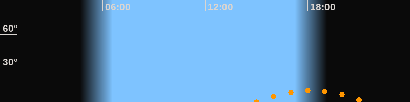 | Aufgang | 14:56 Uhr im Südosten (αAz = 139°) |