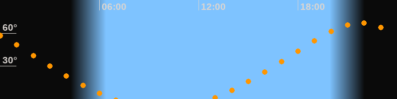 | Aufgang | 12:40 Uhr im Nordosten (αAz = 36,3°) |