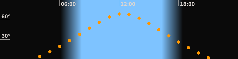 | Höchster Stand (Kulmination) | 12:22 Uhr (h = 69,5°) |
