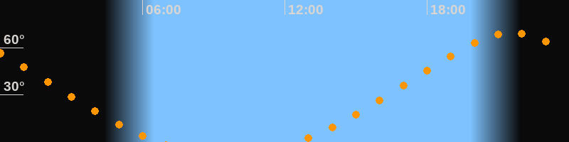 | Aufgang | 12:29 Uhr im Nordosten (αAz = 36,3°) |