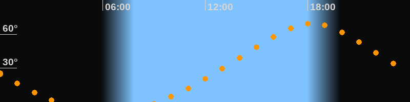 | Höchster Stand (Kulmination) | 18:14 Uhr (h = 69,5°) |