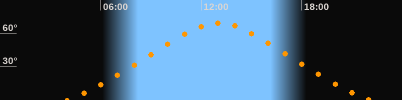| Höchster Stand (Kulmination) | 13:03 Uhr (h = 69,5°) |