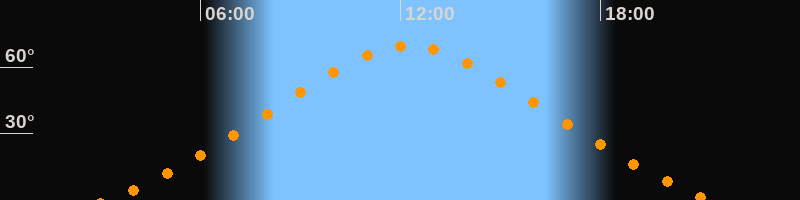 | Höchster Stand (Kulmination) | 12:15 Uhr (h = 69,5°) |