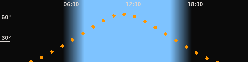 | Höchster Stand (Kulmination) | 11:56 Uhr (h = 69,5°) |