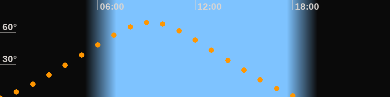 | Höchster Stand (Kulmination) | 09:14 Uhr (h = 69,5°) |