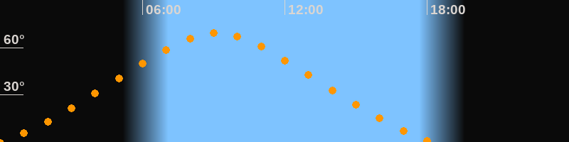 | Höchster Stand (Kulmination) | 09:07 Uhr (h = 69,5°) |