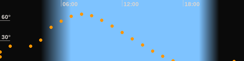 | Höchster Stand (Kulmination) | 08:06 Uhr (h = 69,5°) |