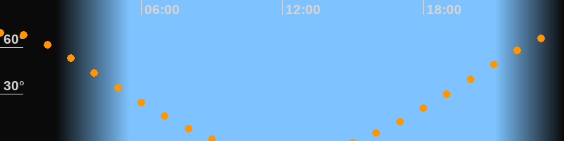 Höchster Stand (Kulmination)00:10 Uhr (h = 69,5°)