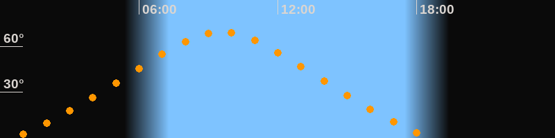 | Höchster Stand (Kulmination) | 09:33 Uhr (h = 69,5°) |