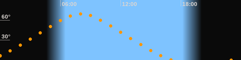 | Höchster Stand (Kulmination) | 08:03 Uhr (h = 69,5°) |