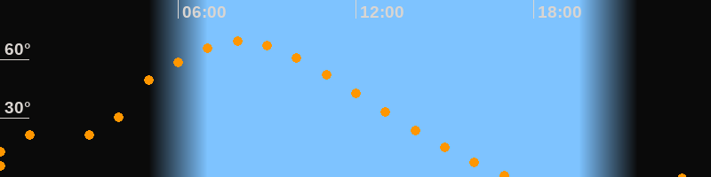 | Höchster Stand (Kulmination) | 08:07 Uhr (h = 69,5°) |