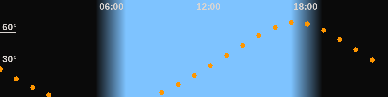 | Höchster Stand (Kulmination) | 18:18 Uhr (h = 69,5°) |