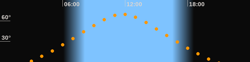 | Höchster Stand (Kulmination) | 11:44 Uhr (h = 69,5°) |