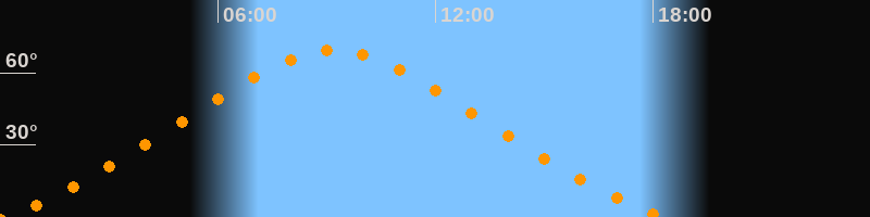 | Höchster Stand (Kulmination) | 09:11 Uhr (h = 69,5°) |