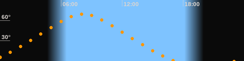 | Höchster Stand (Kulmination) | 08:08 Uhr (h = 69,5°) |