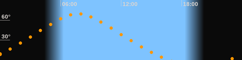 | Höchster Stand (Kulmination) | 07:41 Uhr (h = 69,5°) |