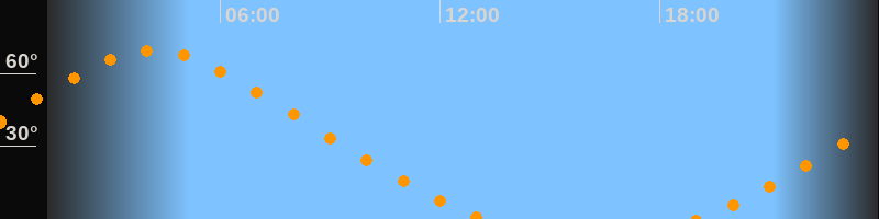 | Untergang | 13:15 Uhr im Nordwesten (αAz = 323,7°) |