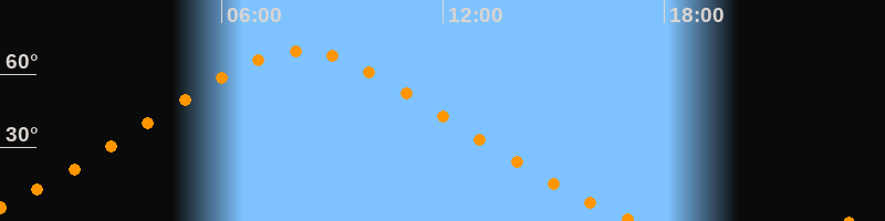 | Höchster Stand (Kulmination) | 08:09 Uhr (h = 69,5°) |