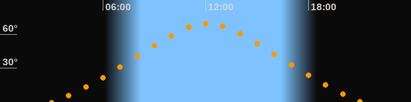 | Höchster Stand (Kulmination) | 12:06 Uhr (h = 69,5°) |