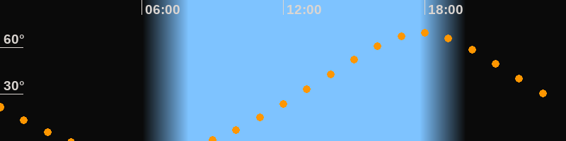 Höchster Stand (Kulmination)17:52 Uhr (h = 69,5°)
