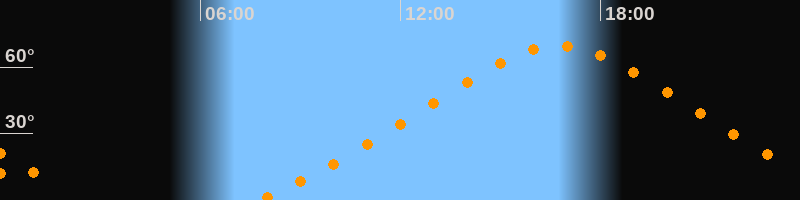 | Höchster Stand (Kulmination) | 16:44 Uhr (h = 69,5°) |