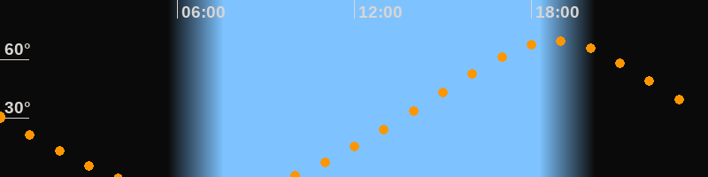 Höchster Stand (Kulmination)18:49 Uhr (h = 69,5°)