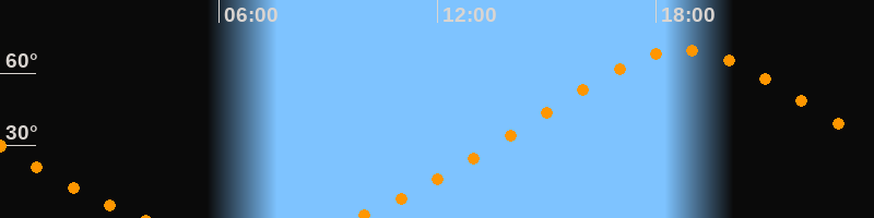 Höchster Stand (Kulmination)18:45 Uhr (h = 69,5°)