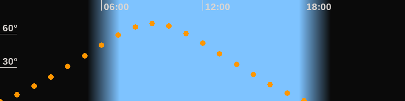 | Höchster Stand (Kulmination) | 09:06 Uhr (h = 69,5°) |