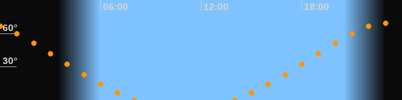 | Untergang | 08:07 Uhr im Nordwesten (αAz = 323,7°) |