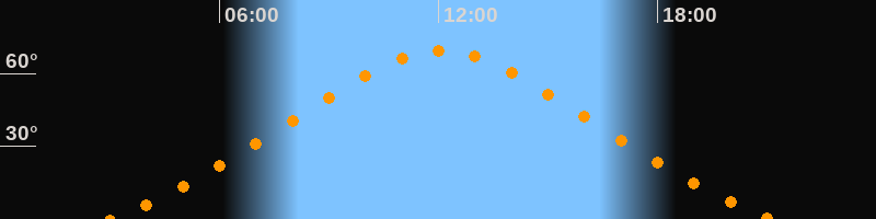| Höchster Stand (Kulmination) | 12:04 Uhr (h = 69,5°) |