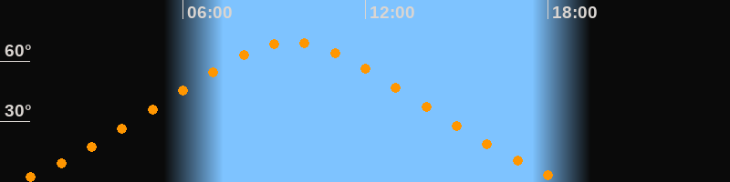 | Höchster Stand (Kulmination) | 09:34 Uhr (h = 69,5°) |