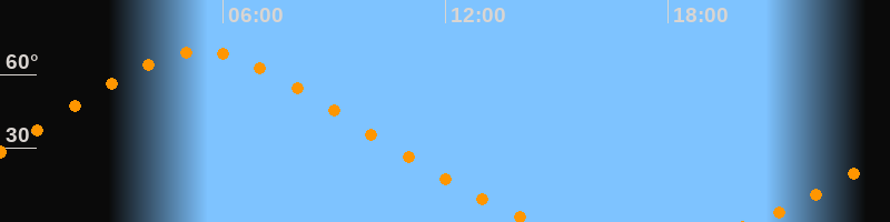 | Höchster Stand (Kulmination) | 05:24 Uhr (h = 69,5°) |