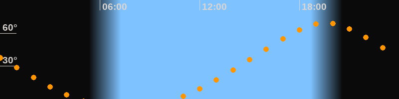 | Höchster Stand (Kulmination) | 19:34 Uhr (h = 69,5°) |