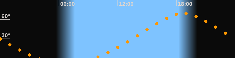 | Höchster Stand (Kulmination) | 18:43 Uhr (h = 69,5°) |