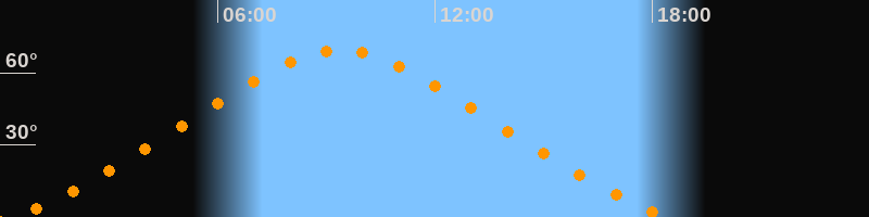 | Höchster Stand (Kulmination) | 09:24 Uhr (h = 69,5°) |