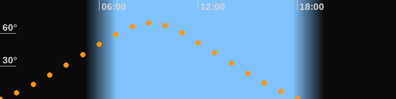 | Höchster Stand (Kulmination) | 09:04 Uhr (h = 69,5°) |