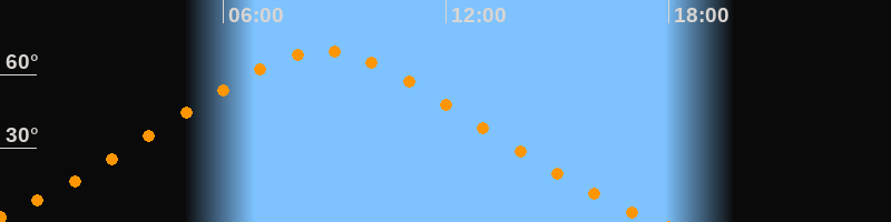 | Höchster Stand (Kulmination) | 08:40 Uhr (h = 69,5°) |