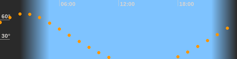 | Aufgang | 17:18 Uhr im Nordosten (αAz = 36,3°) |